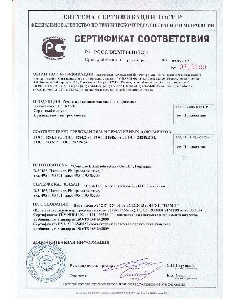Благодаря трапециевидному сечению приводные ремни ContiTech реже слетают, у них выше сила трения, увеличенный КПД.